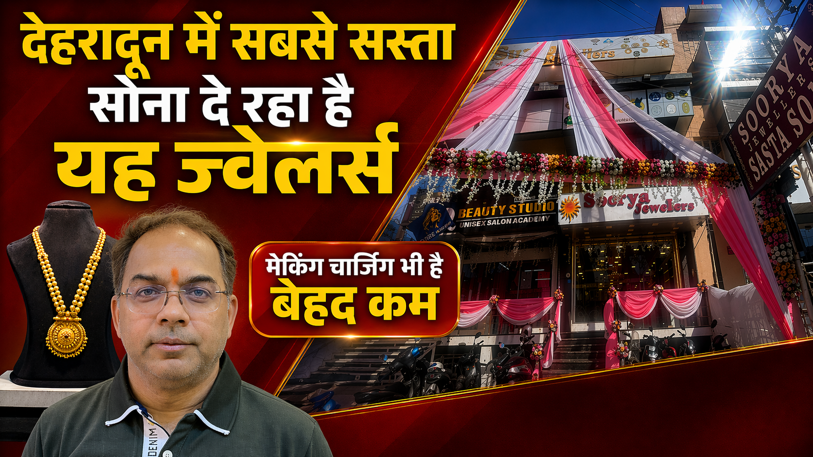 देहरादून। सोने की लगातार बढ़ती कीमतों के बीच धर्मपुर स्थित सूर्या ज्वेलर्स ने ग्राहकों को राहत देने का दावा किया है। जहां बाजार में सोने के दाम ऊंचाई पर हैं, वहीं यह ज्वेलर्स मार्केट रेट से करीब 2 से 3 हजार रुपये तक सस्ता सोना उपलब्ध कराने की बात कह रहा है। इसके साथ ही यहां मेकिंग चार्ज भी लगभग 4 प्रतिशत से शुरू होने की जानकारी दी गई है, जो ग्राहकों को आकर्षित कर रही है।